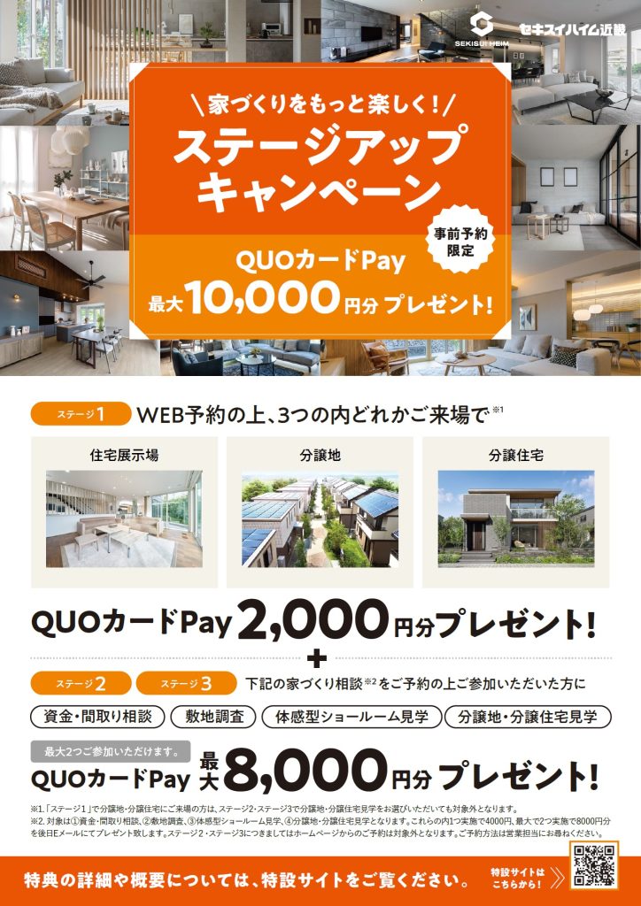 ステージ1のweb予約にて2,000円分、その後ステージ2、ステージ3をご来場して頂いた方に