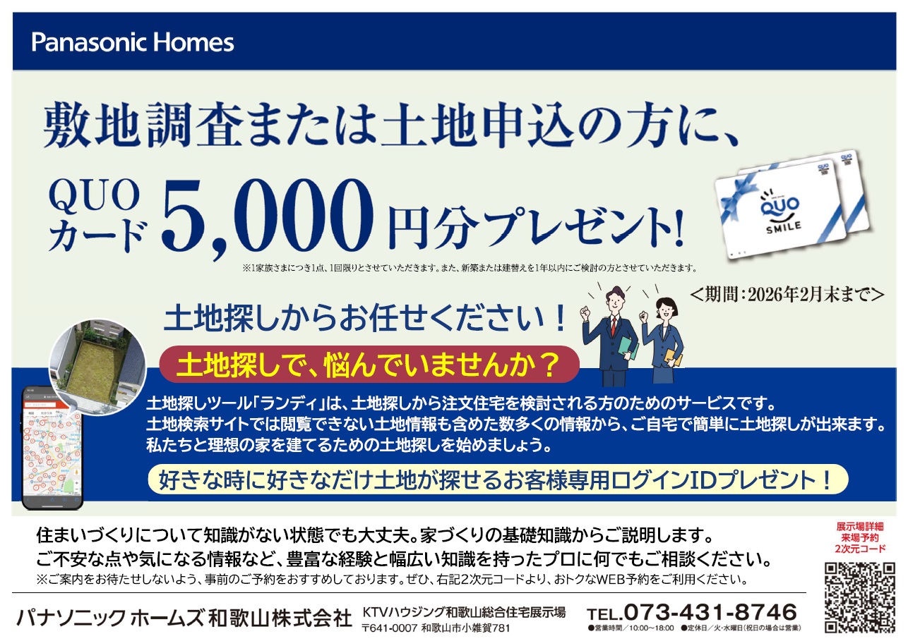 QUOカード5,000円分プレゼント!<2026年2月28日(土)まで>